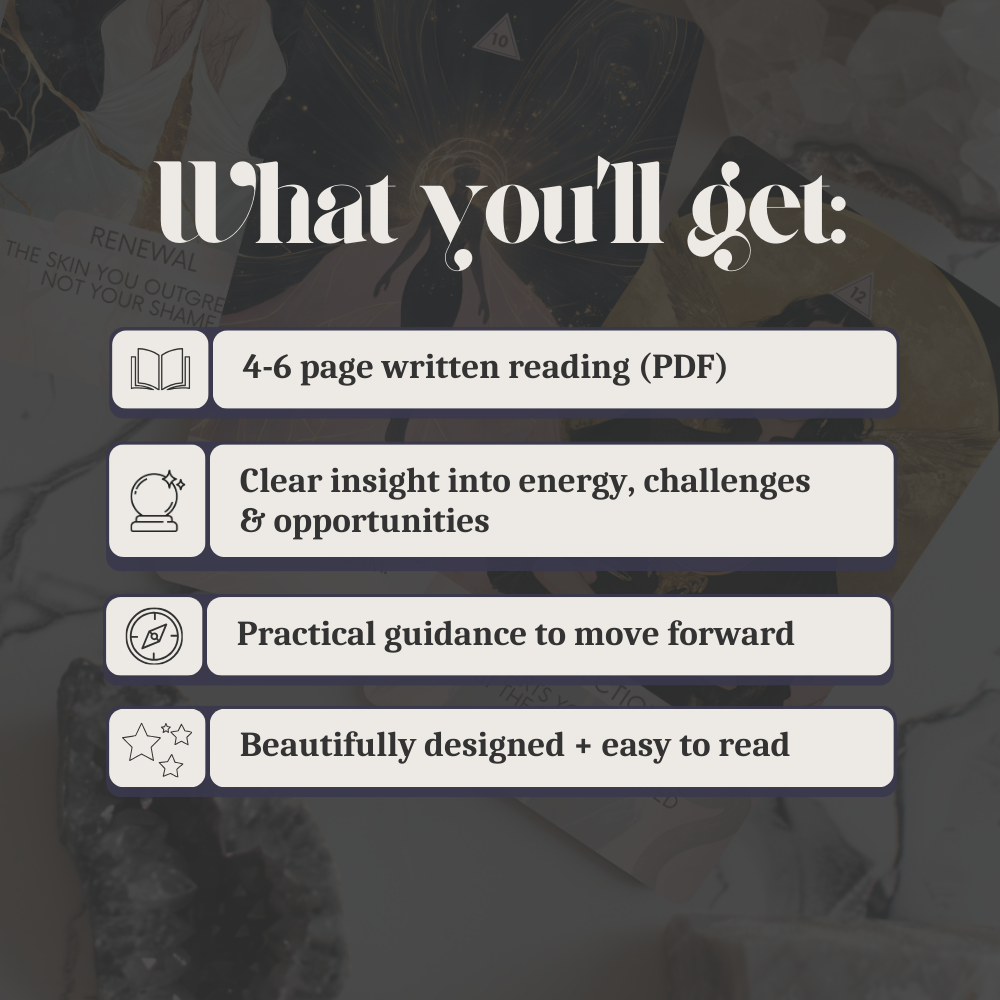 In this short written PDF reading, I’ll interpret your cards in a clear, actionable way, so you can move forward with confidence and perspective.